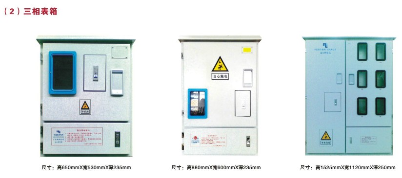 >規格說明:此類三相表箱,為上下結構,上部分裝主控開關及直入式電度表,下半部分為出線室;設計電流安數為100A;箱內采用BVR6m㎡~BVR35m㎡導線,適用于小容量變壓器的低壓總計量;共有25,40, 63. 80, 100A 5種規格,適合不同的用戶需求。