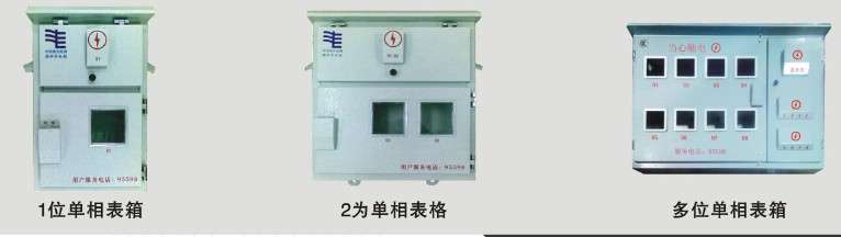 >規格說明:此類單相表箱,結構是主控開關室和出線在上側,電度表室在下側;主控開關從100A-250A,出線斷路器為40A和63A,箱內導線采用BVR6m㎡或BVR10m㎡線,適合安裝40-80A的機械式或電子式單相電度表;共有4, 6,8, 10, 12、5位種規格,適合不同的用戶數量。
